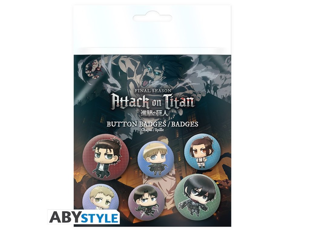 Tyto odznaky od ABYstyle s klíčovými postavičkami ve stylu chibi z filmu Útok na Titána se skvěle hodí na vaší tašku nebo bundu!