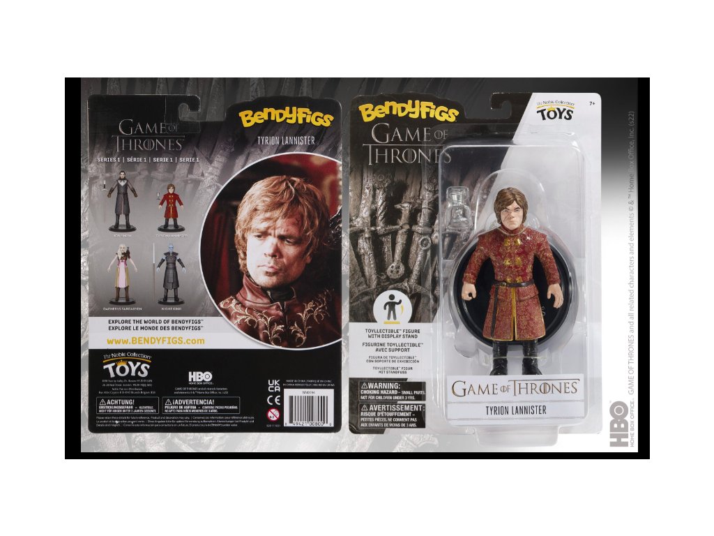 Autentická, složitá ohýbací figurka Tyriona Lannistera o výšce přibližně 5,75″. Dodává se se stojanem pro volitelné vystavení.