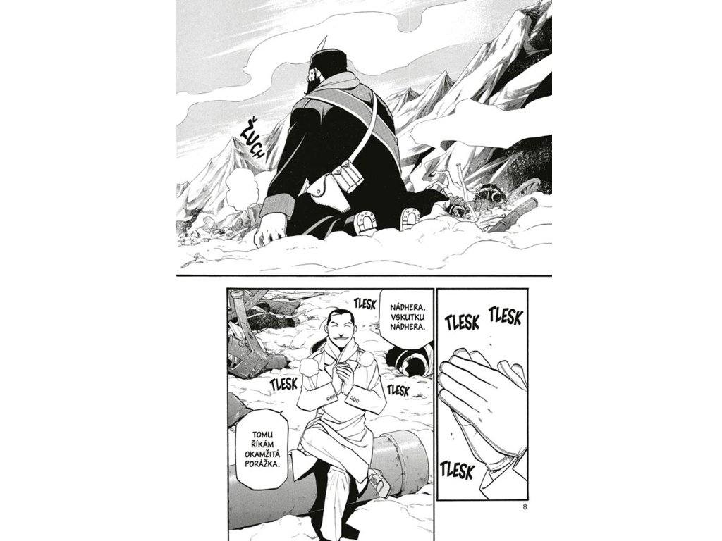 Na severu se schyluje k bitvě o pevnost Briggs, Envy míří do Azbeku a generálmajor Armstrong řádí v hlavním městě. Společný jmenovatel? Zrada. A nikdo netuší, kam se poděl Ocelový alchymista...
