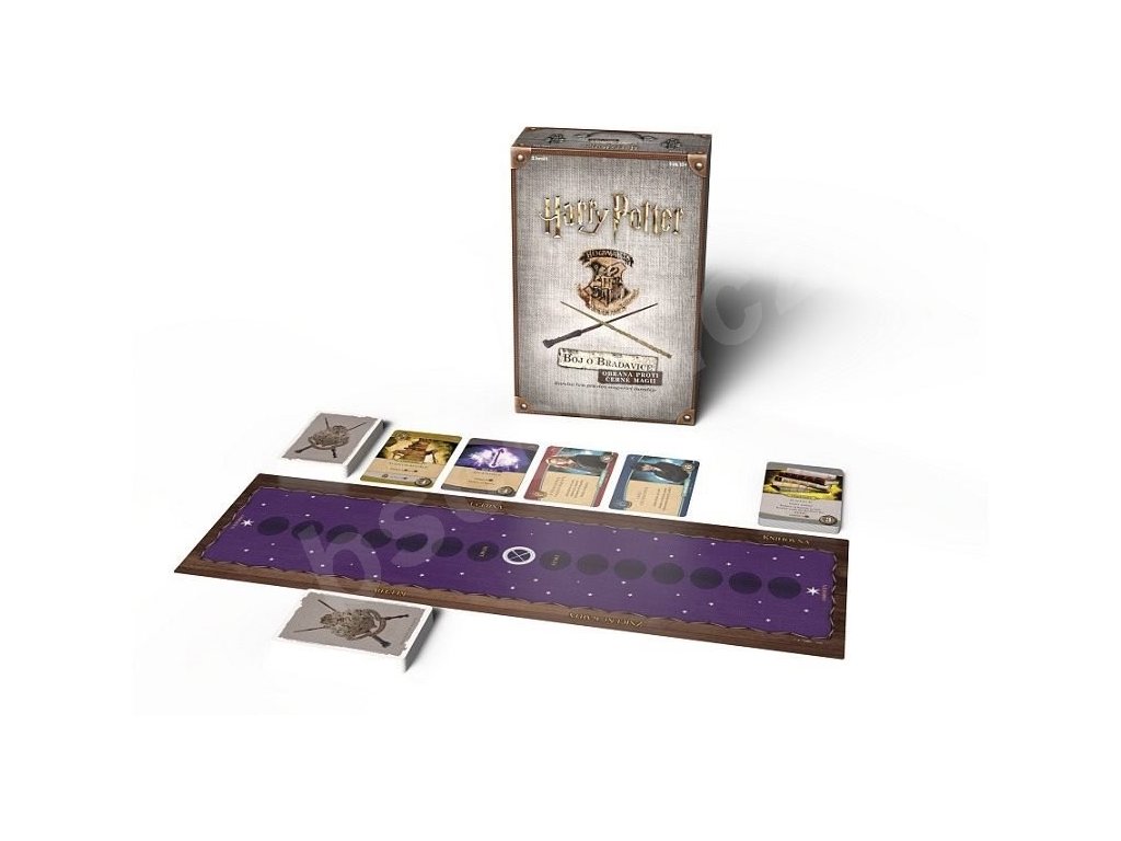 Oblíbený knižní a filmový příběh se svými známými postavami prožijete tentokrát prostřednictvím společenské hry Harry Potter: Boj o Bradavice - Obrana proti černé magii. Jedná se o samostatnou karetní hru na motivy její předchůdkyně "Harry Potter: Boj o Bradavice". Tentokrát se hra zaměřuje na samostatný boj dvou hráčů ve světě kouzel. Za pomoci magie, všemožných předmětů a spojenců bojujete se svým soupeřem na pódiu. Vyhrává hráč s větším počtem vyhraných karet.