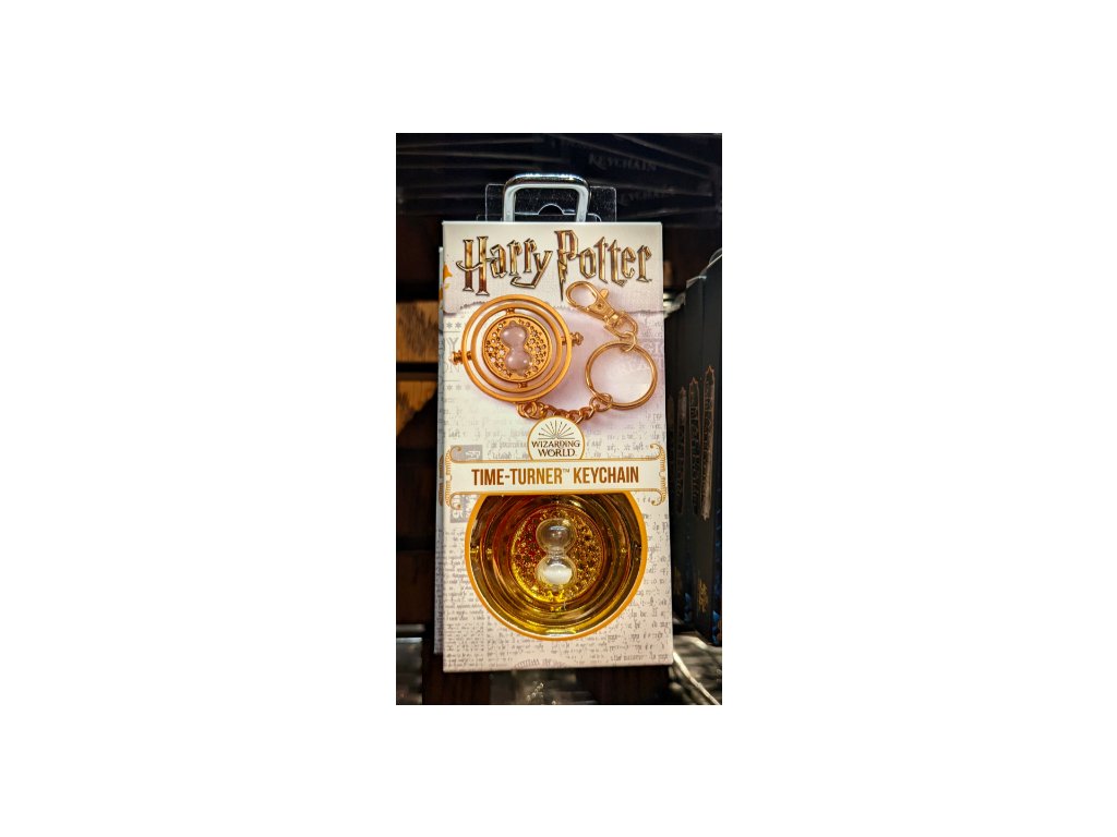 Detailně propracovaná kovová klíčenka s 1,75″ verzí Hermionina obraceče času se všemi pohyby jako naše větší verze.