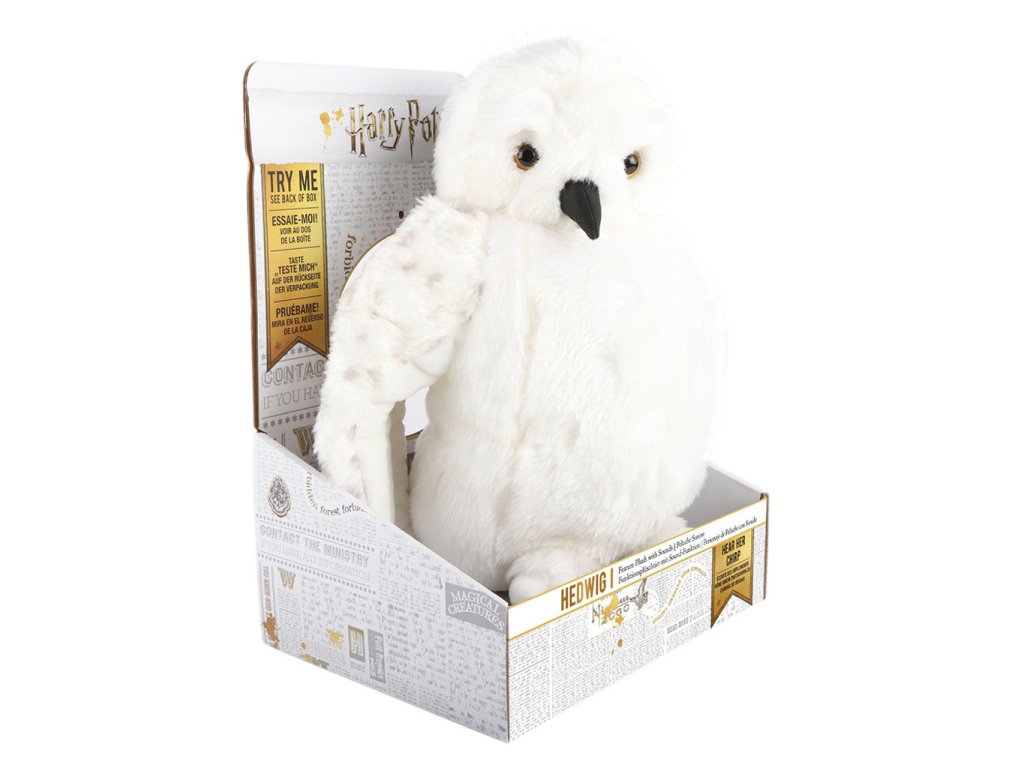 Plyšová Hedvika známá ze série Harry Potter. Sova může otáčet hlavou pomocí vložené ruky, po stisknutí tlačítka vydává zvuky. Výška postavičky 30 cm.