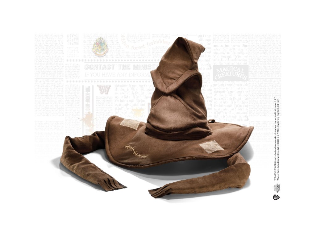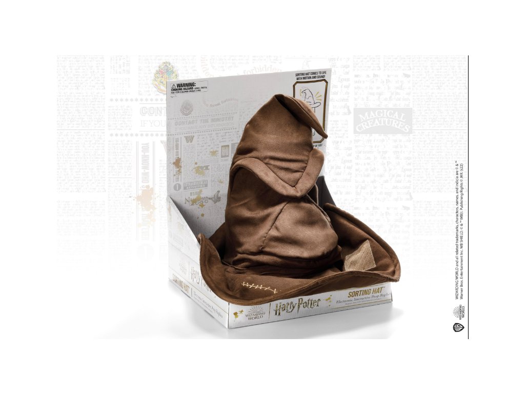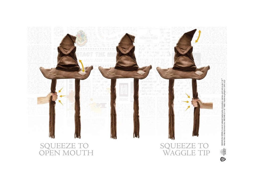 Tento interaktivní třídicí klobouk po nasazení říká jednu ze čtyř frází - jednu pro každý bradavický rod. Špička klobouku a ústa se ovládají stisknutím bočních střapců.