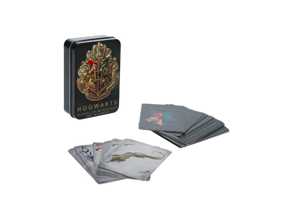 Balíček 54 karet je inspirován čtyřmi rody bradavické školy čar a kouzel a obsahuje barvy v designu Nebelvíru, Mrzimoru, Havraspáru a Zmijozelu.
