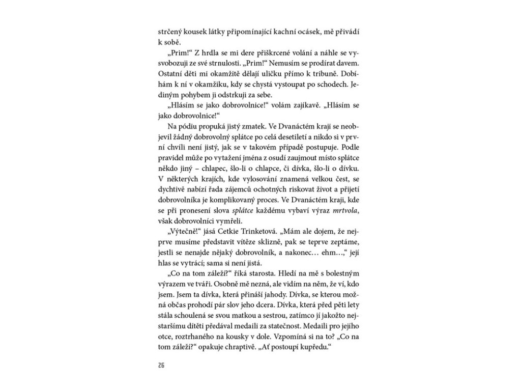 Země Panem – dvanáct krajů a hlavní město Kapitol, které všem ostatním krajům vládne. Rok co rok musí jedna dívka a jeden chlapec z každého kraje nastoupit do zvrácené televizní reality show a bojovat o svůj život. Vítězství v klání Hunger games znamená slávu a bohatství. Prohra znamená jistou smrt. Šestnáctiletá Katniss se do her přihlásí dobrovolně místo své mladší sestry, na kterou padl los. Má šanci mezi nebezpečnými soupeři přežít?