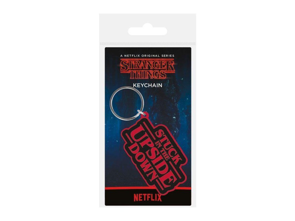 Gumová klíčenka Stranger Things s kovovým očkem na zavěšení.