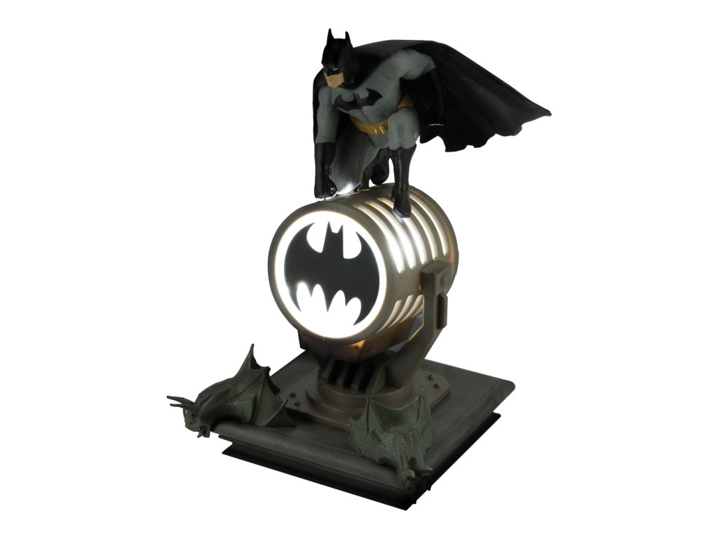 Tato detailně propracovaná figurka Batmana sedícího na netopýřím signálu je vysoká přibližně 27 cm (11″). Když se setmí, zapněte ji a zaplaví váš pokoj bílým světlem LED. Toto impozantní světlo napájené z USB (USB kabel je součástí balení) je oficiálně licencovaným sběratelským předmětem a skvělým pamětním kouskem.