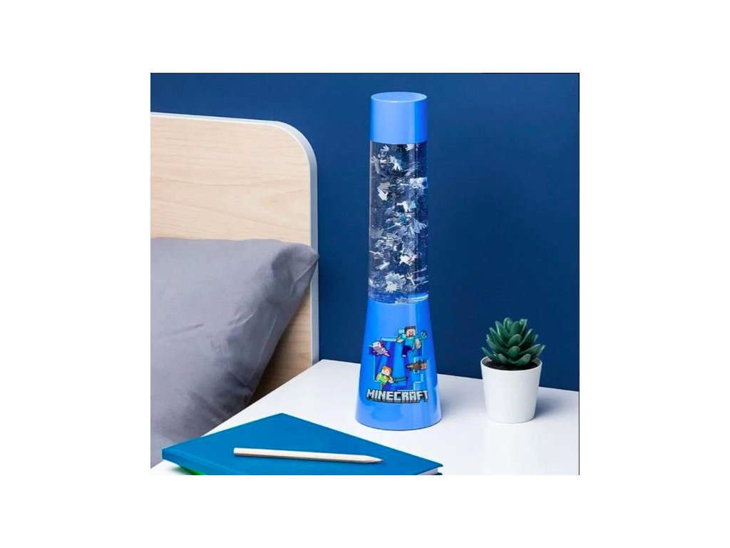 Lampička pro fanoušky a hráče videoher z kostičkového světa Minecraftu ozáří váš pokoj nebo pracovnu modrým světlem podmořského světa, zatímco uvnitř budou vířit stříbrné třpytky ve tvaru axolotla, želvy, strážce, trojzubce a olihně. Lampa je napájena pomocí USB nebo 3 ks baterií AAA (ani kabel ani baterie nejsou součástí balení). Výška lampy 33 cm.