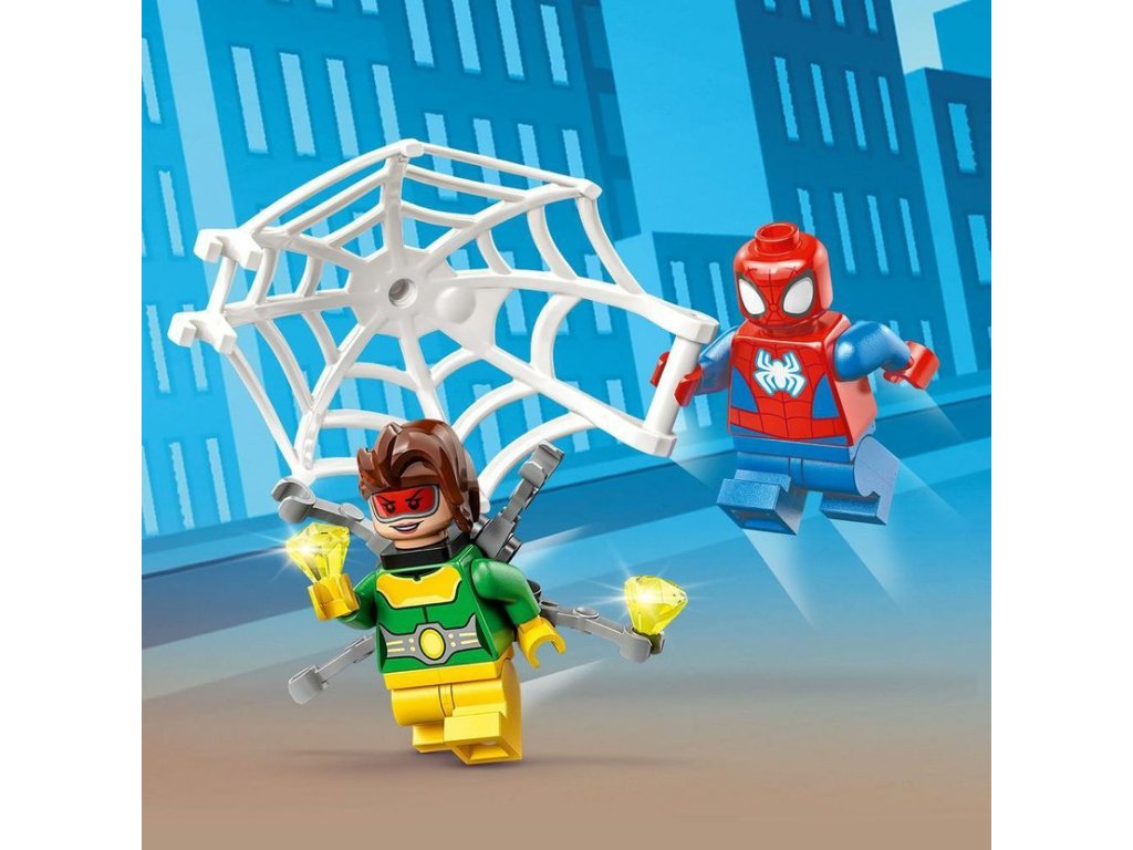Krádež diamantů odstartuje akci a vede děti k nekonečným nápaditým dobrodružstvím. Součástí jsou 2 minifigurky - Spider-Man a Doc Ock - a auto se 2 pavučinami svítícími ve tmě. Speciální startovací blok v podobě podvozku auta vybízí děti, aby si samy postavily auto Spider-Man. Snadno srozumitelné pokyny jsou dodávány v barevné obrázkové brožurce a aby byla zábava ještě digitálnější, obsahuje aplikace LEGO Builder intuitivní nástroje pro přibližování a otáčení, které dětem umožňují vizualizovat si model, který stavějí.