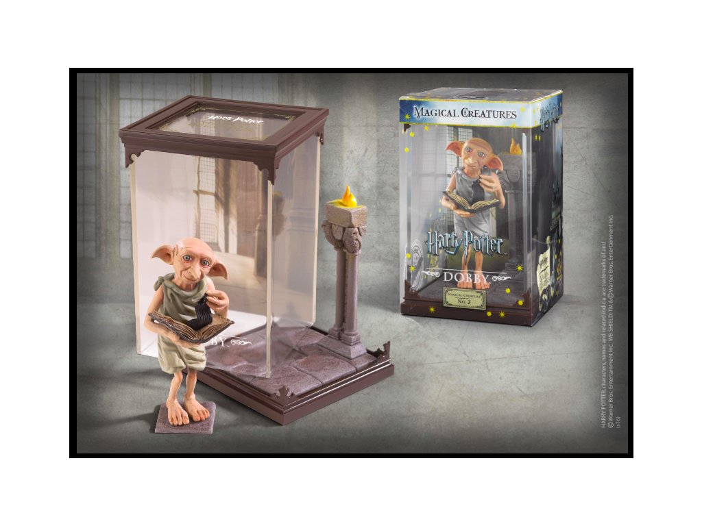 Ručně malovaná plastová soška domácího skřítka Dobbyho, který byl zotročen Malfoyovými, od nichž nakonec utekl a stal se oddaným přítelem Harryho Pottera; tak oddaným, že zemřel při záchraně Harryho života.