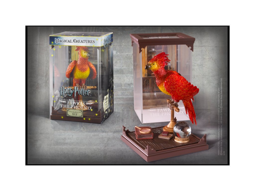 Precizně zpracovaná, ručně malovaná plastová soška Fawkese, vysoce inteligentního fénixe, zvířecího společníka a ochránce Albuse Brumbála.
