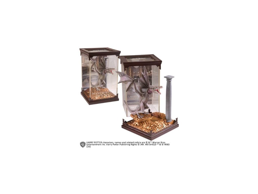 Precizně zpracovaná, ručně malovaná plastická soška ukrajinského železnobřichého, největšího druhu draka s obrovským rozpětím křídel a drápy silnými jako ocel. Tento drak střežil zlato v Gringottových trezorech.