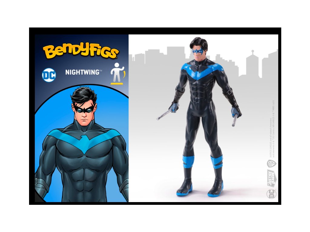 Tato autentická, propracovaná ohýbací figurka Nightwinga od DC obsahuje stojánek pro vystavení.