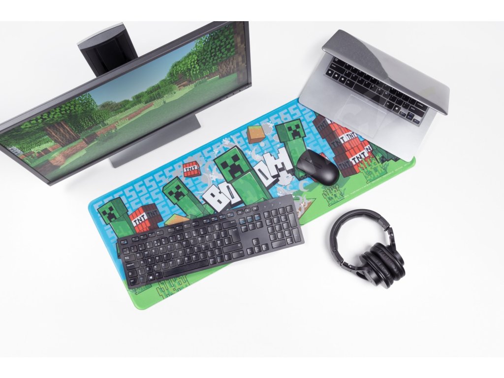 Podložka pod myš PALADONE umožňuje plynulejší pohyb po podkladu. U tohoto kousku jde o širší variantu pod myš a klávesnici najednou, aby se využilo zatížení klávesnicí a podložka se nepohybovala. Samozřejmou předností Minecraft - Creeper - herní podložka na stůl je povrch, který se snadno čistí a nedráždí pokožku. Podložku tvoří textil.