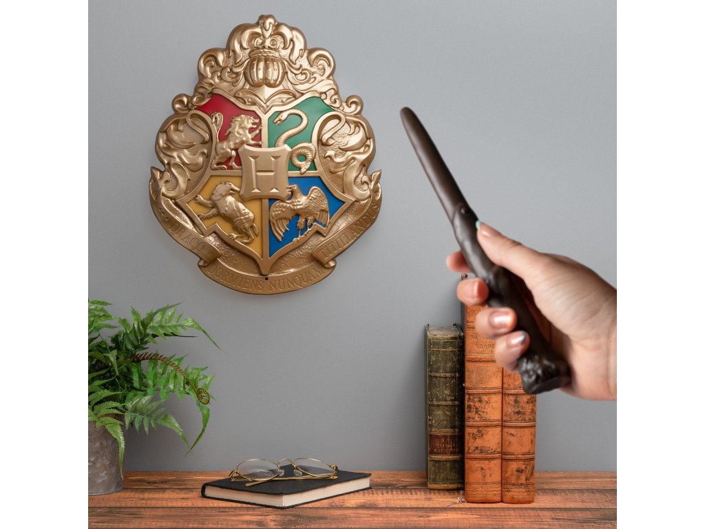 Rozsviťte svou ložnici nebo domov a staňte se studentem Bradavic s tímto světlem a hůlkou na dálkové ovládání s erbem Bradavic.