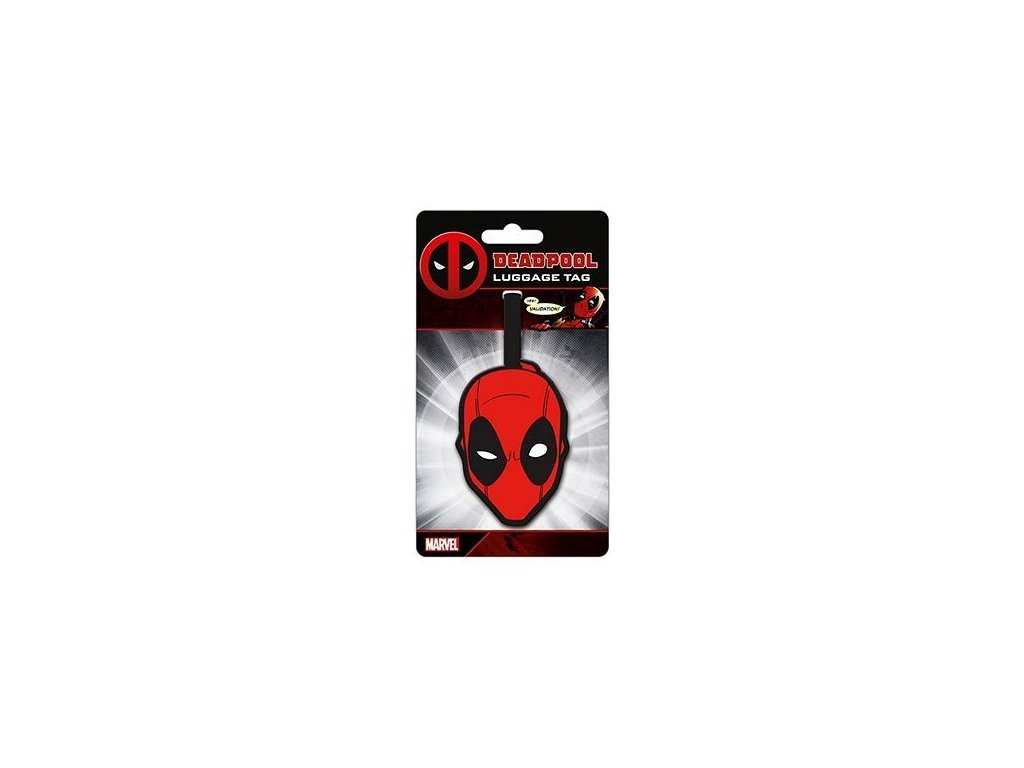 Gumová visačka na zavazadlo se znakem Deadpoola.